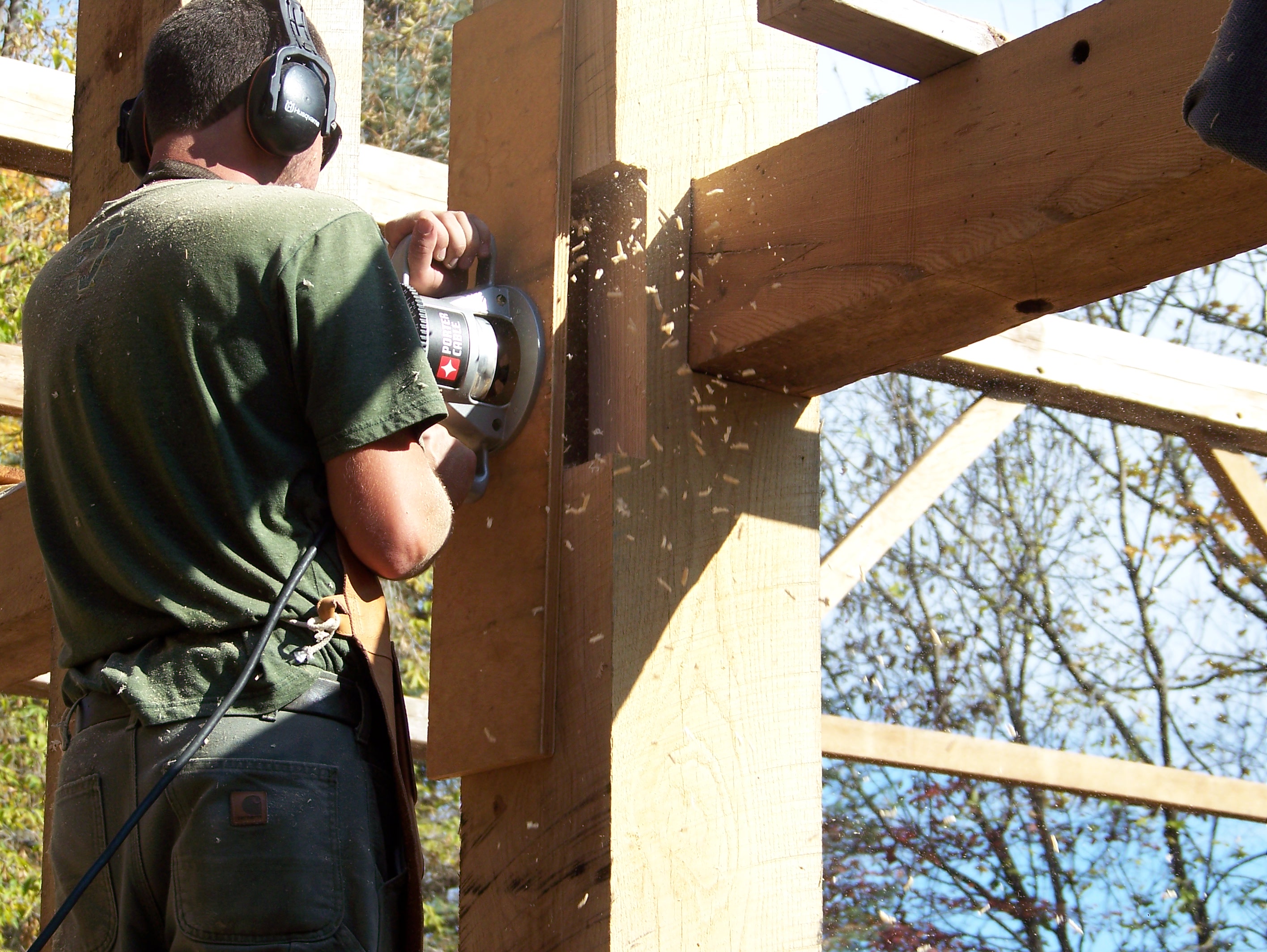 chopping-oak-timbers_green-mountain-timber-frames
