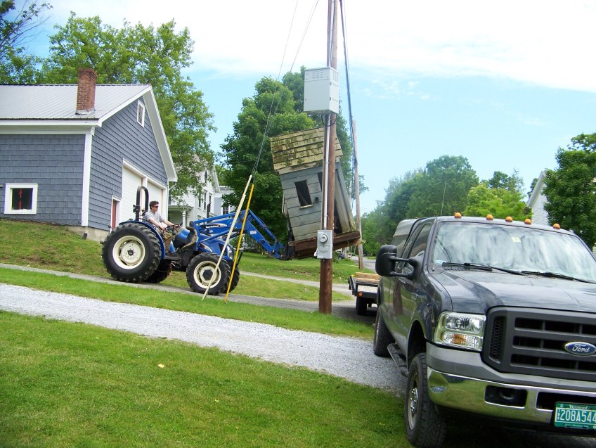 playhouse arriving for restoration at green mountain timber frames