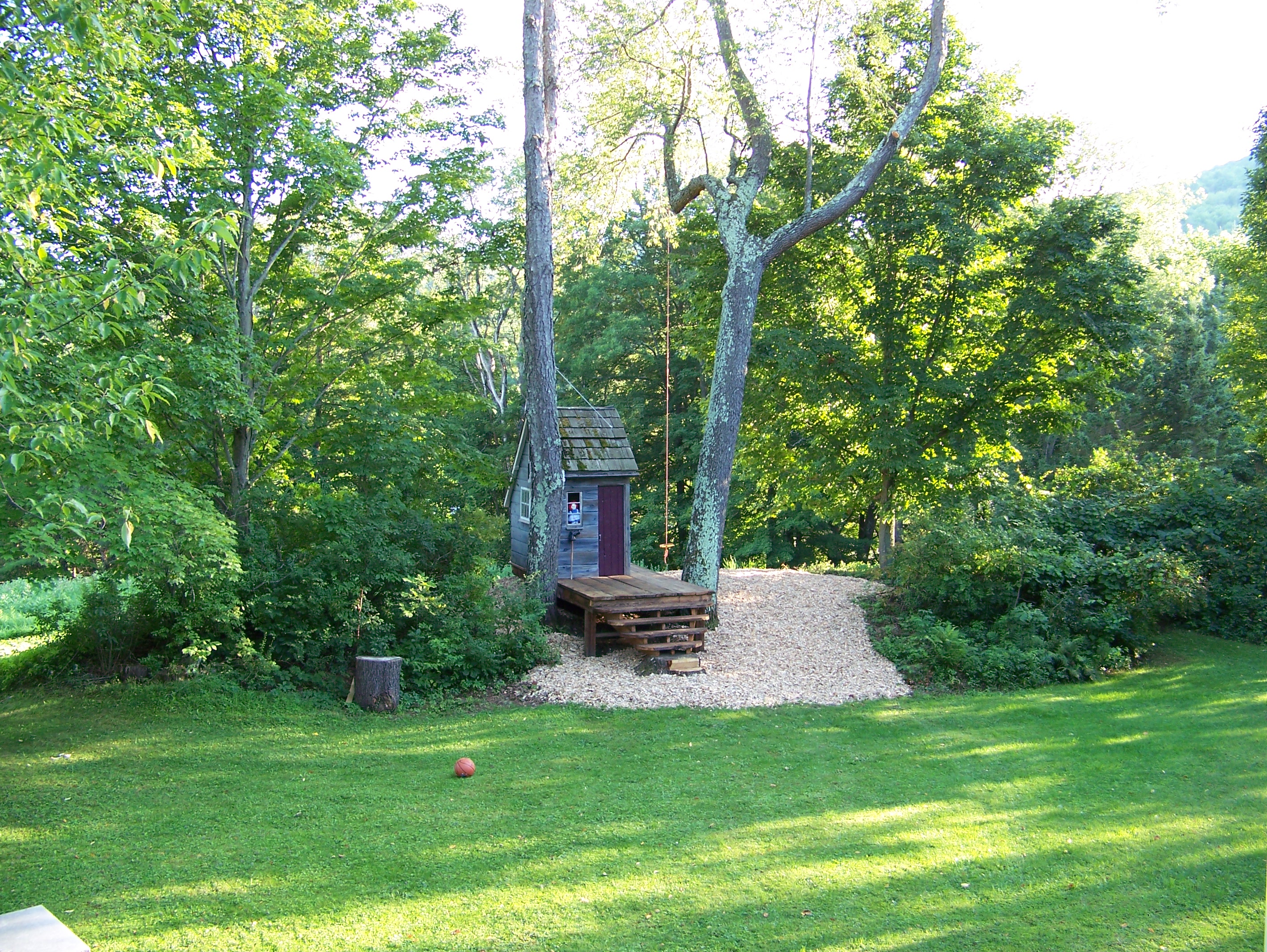 Rope swing with vintage playhouse