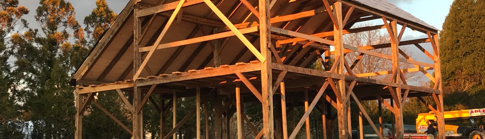 The crane arrived early on a frosty morning, and the first bent was erected and set into the sill mortises.