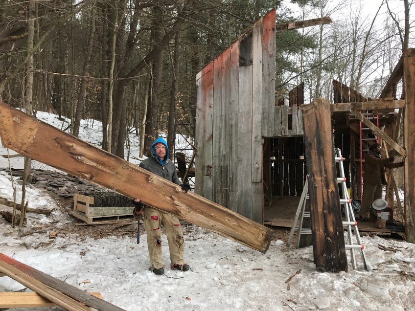 trapper’s cabin corn crib wide siding board green mountain timber frames