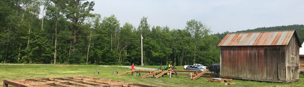 It has been a busy start to the summer at Green Mountain Timber Frames! After several weeks of traveling, we are excited to be spending this week at our home base in Middletown Springs erecting two gorgeous vintage barns on the property.