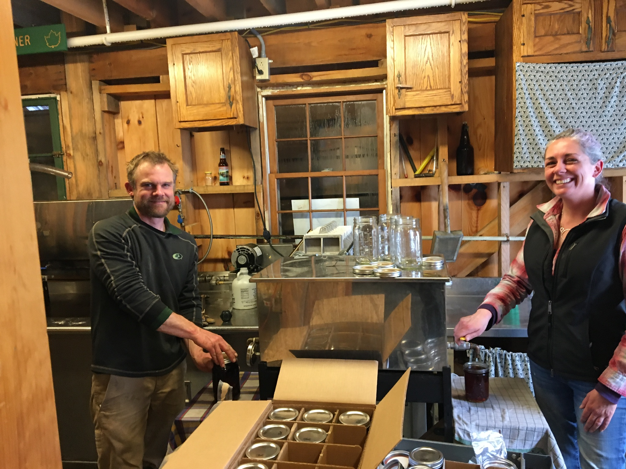 Sara and Luke making maple syrup for green mountain timber frames and gardens