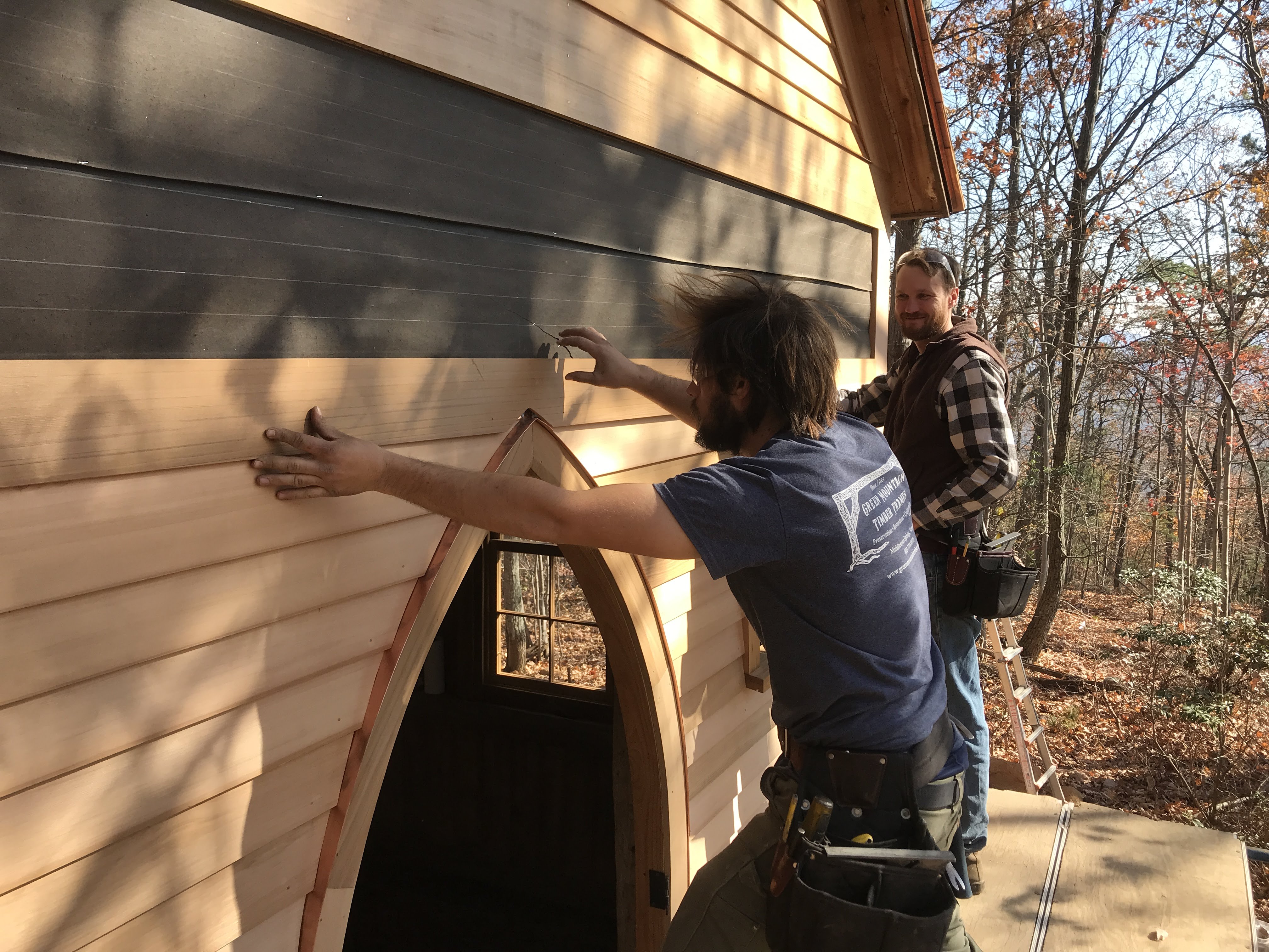 We sided the chapel with cedar clapboards